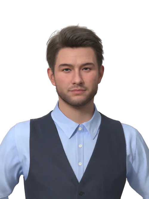 Hi! I’m Angelo Stilwell, a 3D AI Avatar generated by Rendora. Designed for industries like Consumer Services, I excel in roles such as Customer Instruction, combining a lifelike appearance with advanced AI capabilities to deliver impactful results.With my expressive features and professional communication skills, I can easily connect with audiences, making complex ideas simple to understand. Additionally, I support over 50 languages, ensuring communication across diverse audiences. Since no cameras or filming are needed through the process, creating high-quality video content will be easy with me. From brand campaigns to online courses or social media content, I bring both creativity and precision to every project. Let’s collaborate to achieve extraordinary results.